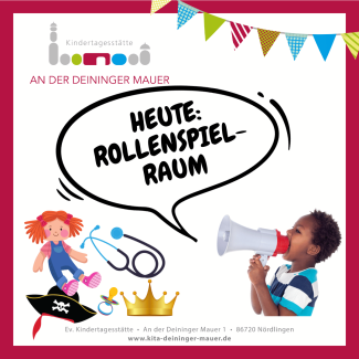 Der heutige große Rollenspielraum war früher unser dritter Gruppenraum. Heute kann man ihn als große Kinderwelt bezeichen. Die Kids finden hier alles, was in unserem Alltag vorkommt. Mit schönen, ansprechenden Trennwänden wurde eine Art Wohnung für die Kinder errichtet. Außerdem gibt es hier eine zweite Ebene, welche immer wieder für die Kinder umgestaltet wird. Momentan findet man hier einen Schlafbereich mit Matratzen, Puppenbettchen, Kleiderkommode, etc. Unterhalb haben sich die Kinder gerade eine kleine Höhle eingerichtet, wo sie auch mal ganz ungestört spielen können. An der Küchenzeile zaubern die Kinder tagtäglich die tollsten Menüs und Leckereien auf den Tisch. Um die vielen verschiedenen Puppenbabies wird sich auch immer rührend gekümmert: sie werden gewickelt, gebadet, an- und ausgezogen, die Kinder gehen mit ihnen spazieren, füttern und beruhigen sie oder fahren mit unserem Holzauto mit ihnen zum Arzt. Die anderen Bereiche werden flexibel, je nach Interesse der Kinder mit ihnen gemeinsam ausgetauscht und umgestaltet. Es gibt die verschiedensten Verkleidungen, mit welchen die Kinder in die unterschiedlichsten Rollen schlüpfen können. Vom Arzt, über den Polizisten, einem Schulkind, zum Piraten, über Prinzessin, zur Fee, oder einer Braut, hier können wir wirklich so ziemlich alles anbieten. Für Kinder die nicht selbst aktiv in eine Rolle schlüpfen möchten, stehen auch Handpuppen, Fingerpuppen und Kasperlefiguren bereit. So kommt jedes Kind auf seine Kosten. Außerdem werden in unserem Rollenspielraum auch Playmobil, unsere Bauernhoftiere, die Holzeisenbahn usw. immer wieder abwechselnd angeboten.